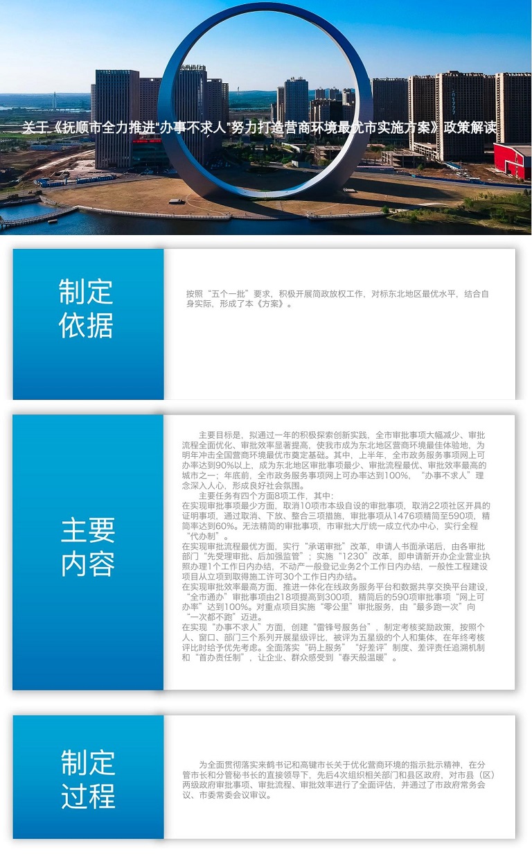 《做爱视频 办公室关于印发<抚顺市全力推进“办事不求人”努力打造营商环境最优市实施方案>的通知》政策解读