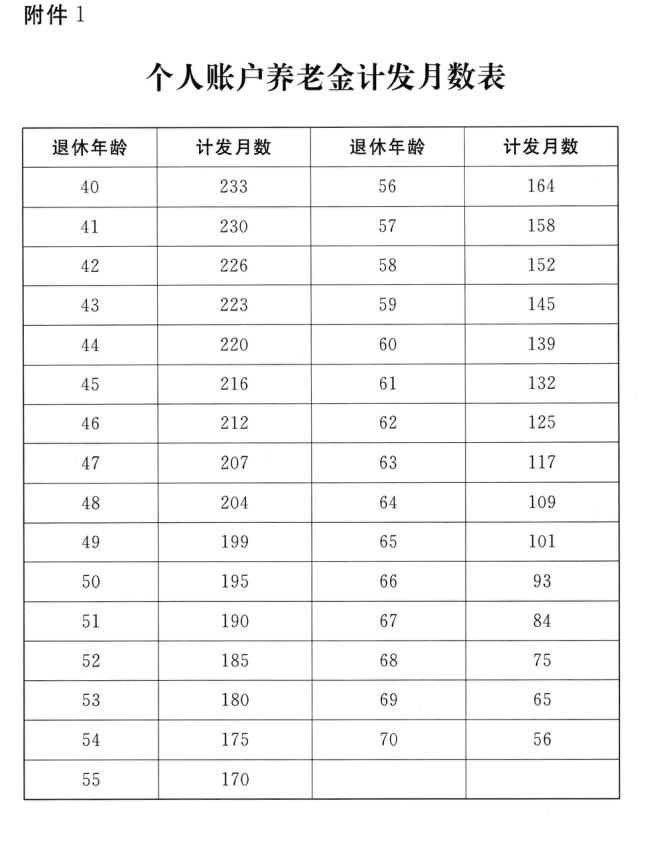 附件:1.个人账户养老金计发月数表